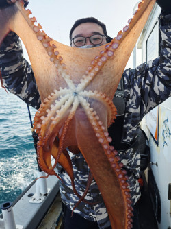 ???? 동해 피문어 출조!펼치면 예술, 들면 묵직한 손맛 ????오늘은 동해 앞바다로 피문어 출조 다녀왔습니다.아침부터 바람은 차분, 파도도 무난해서 기대감 MAX 상태로 출항 ????포인트 도착 후 얼마 지나지 않아묵직~하게 들어오는 입질!올라오는 순간부터 “아… 이건 문어다” 싶은 그 무게감 ???????? 오늘의 하이라이트 – 피문어 펼침샷사진에서 보시다시피오늘 문어들 상태가 아주 예술입니다.다리 쫙 펼치면 우산급 사이즈살색 선명하고 피문어 특유의 붉은 빛 가득흡반 상태도 좋고, 힘도 살아있는 놈들 ????들어 올리면 팔 힘 빠지고,펼쳐 놓으면 다들 감탄부터 나오는 그런 사이즈들입니다.???? 오늘 조황 한 줄